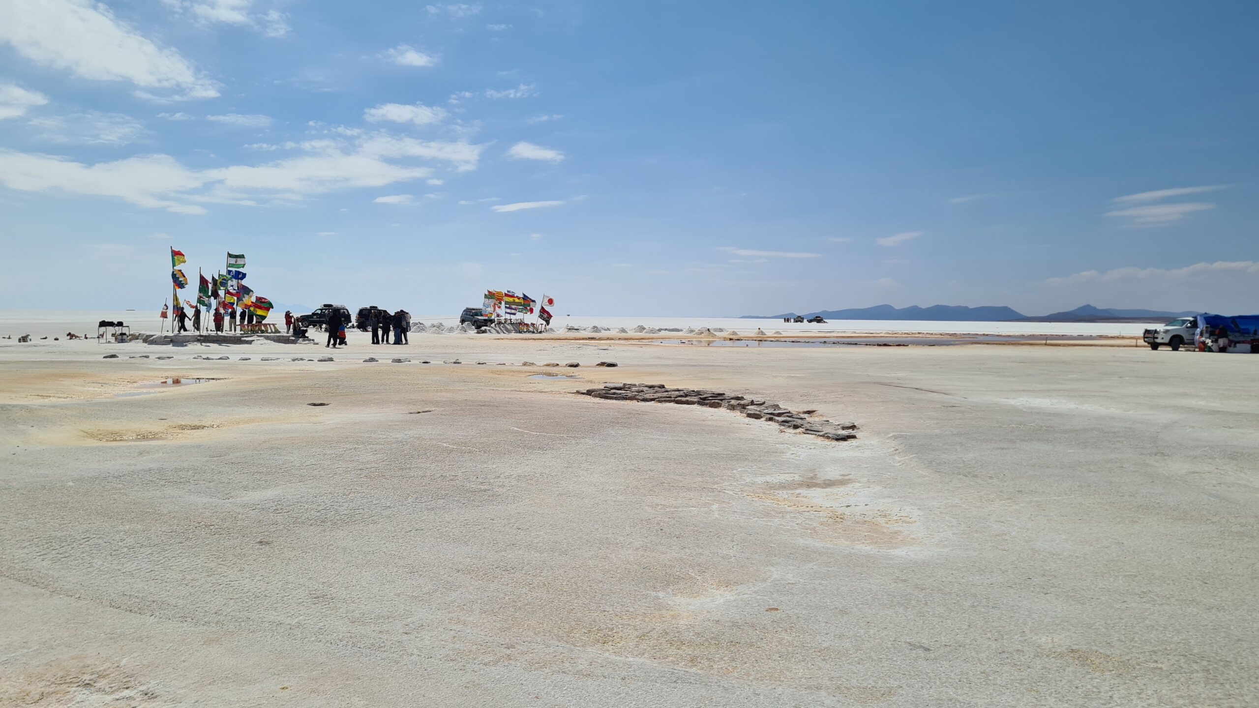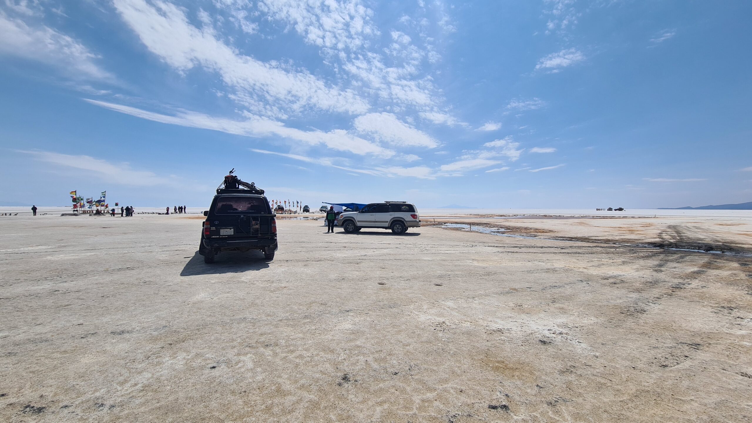 Salzkruste und endlose Weiten: Der erste Eindruck der weißen Fläche bleibt unvergesslich. Kilometerweit sieht man nichts als Salz, Himmel und vielleicht ein Jeep in der Ferne.