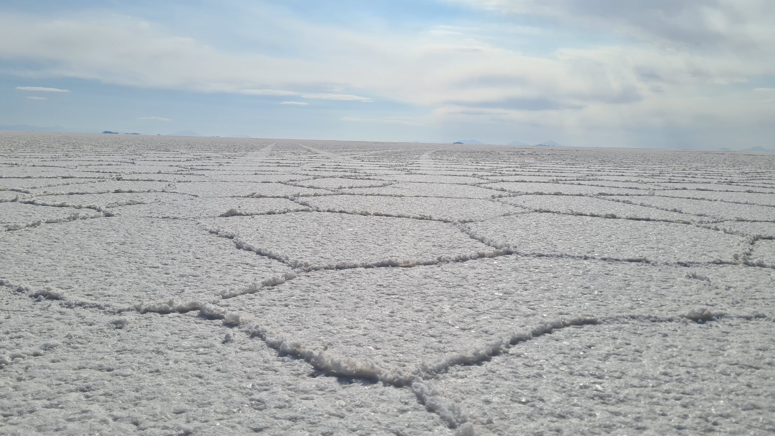 Das Salz selbst formt eine ungewöhnliche sechseckige Struktur, die durch die Verdunstung von Wasser und die Kristallisation von Salz entsteht. Diese Muster erstrecken sich über Hunderte von Kilometern und machen den Boden zu einem geometrischen Kunstwerk der Natur.